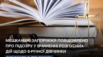 Мешканцю Запоріжжя повідомлено про підозру у вчиненні розпусних дій щодо 8-річної дівчинки, – повідомили в Запорізькій обласній прокуратурі. За процесуального керівництва ювенальних прокурорів Дніпровської окружної …