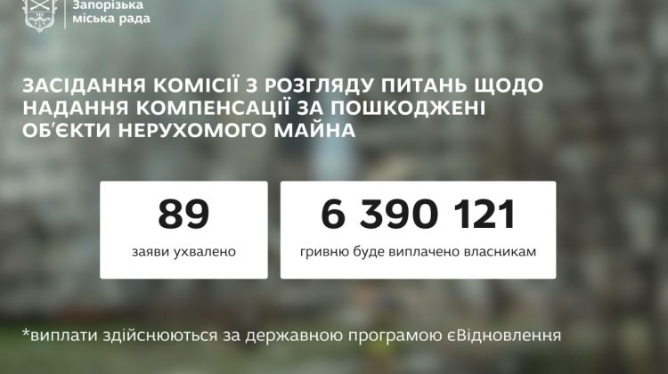 Ще 89 запоріжців отримають грошову компенсацію на ремонт свого житла, пошкодженого російськими обстрілами, – повідомили в Запорізькій міськраді. У Запоріжжі під час чергового засідання комісії …