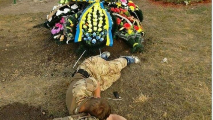 Від цієї світлини, яку виклали у «Фейсбуці» просто розривається серце. Героя війни поховали, поклали вінки. Насилу відірвали від могили вбитих горем дружину і маму. Та …