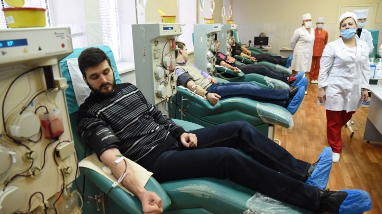 Вчера, 26 декабря, в рамках благотворительного проекта Запорожской епархии Украинской Православной Церкви «Любовь милосердствует», свою кровь для больных детей сдали знаменитые атлеты, борцы и гиревики