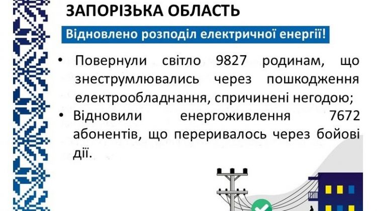 12 січня відновили електропостачання 19 тисяч родин, — повідомили в «Запоріжжяобленерго». Ворог продовжує завдавати ударів по інфраструктурі, спричиняючи пошкодження електромереж. Найскладніша ситуація в Запорізькому регіоні …