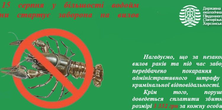 З 15 серпня у більшості водойм України стартує заборона на вилов раків: