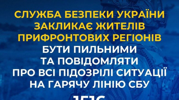 СБУ закликає жителів прифронтових регіонів бути пильними та повідомляти про всі підозрілі ситуації на гарячу лінію СБУ – 1516. Служба безпеки фіксує, що ворог останнім …
