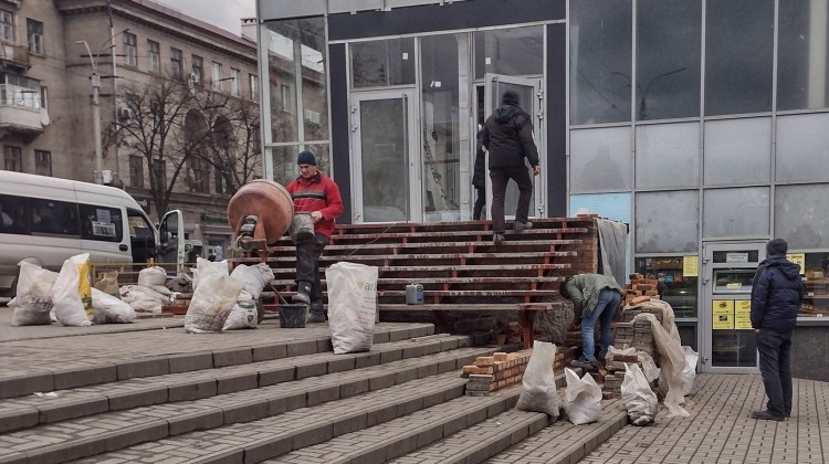 На вулиці Базарній будують щось з новими сходами поверх вже існуючих сходів