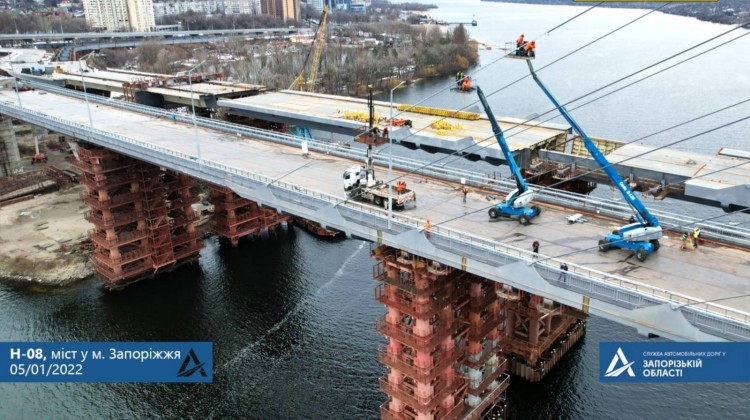Завершуються будівельні роботи на верховій частині вантового мосту Запоріжжя