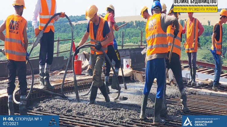 Підрядники завершили бетонування 4-ї захватки підходу до балкового мосту На заармовану плиту проїзду довжиною 42 метри пішло понад 200 кубометрів бетону. Після бетонування ділянку накрили спеціальною …