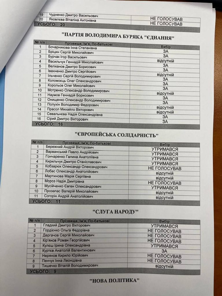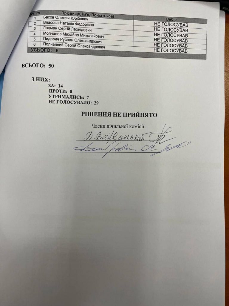 Рішення не виносити це питання навіть на розгляд — також є рішенням.І воно має конкретні прізвища. Поіменні результати голосування — на фото.